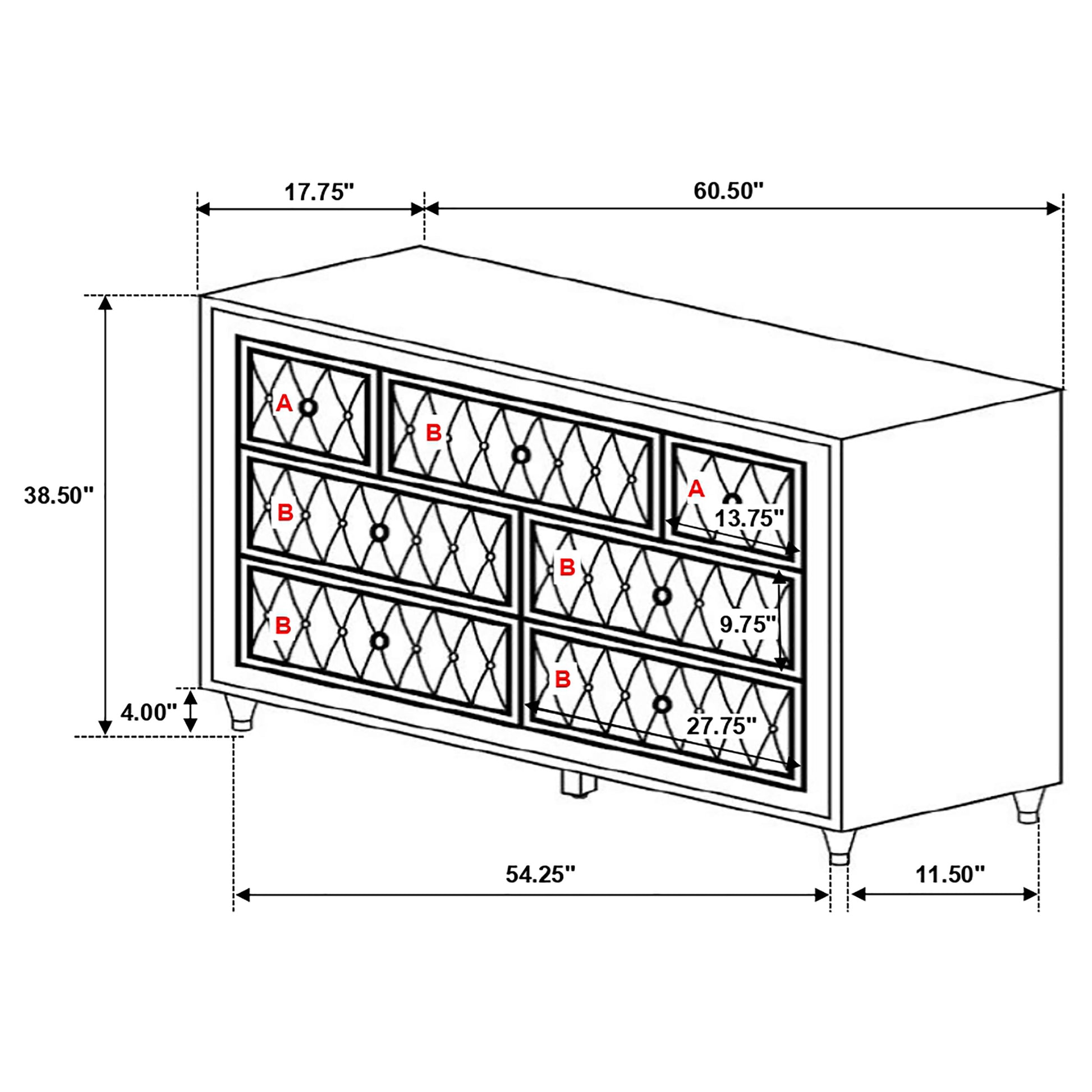 • Storage pieces include ample drawer capacity and signature crystal hardware