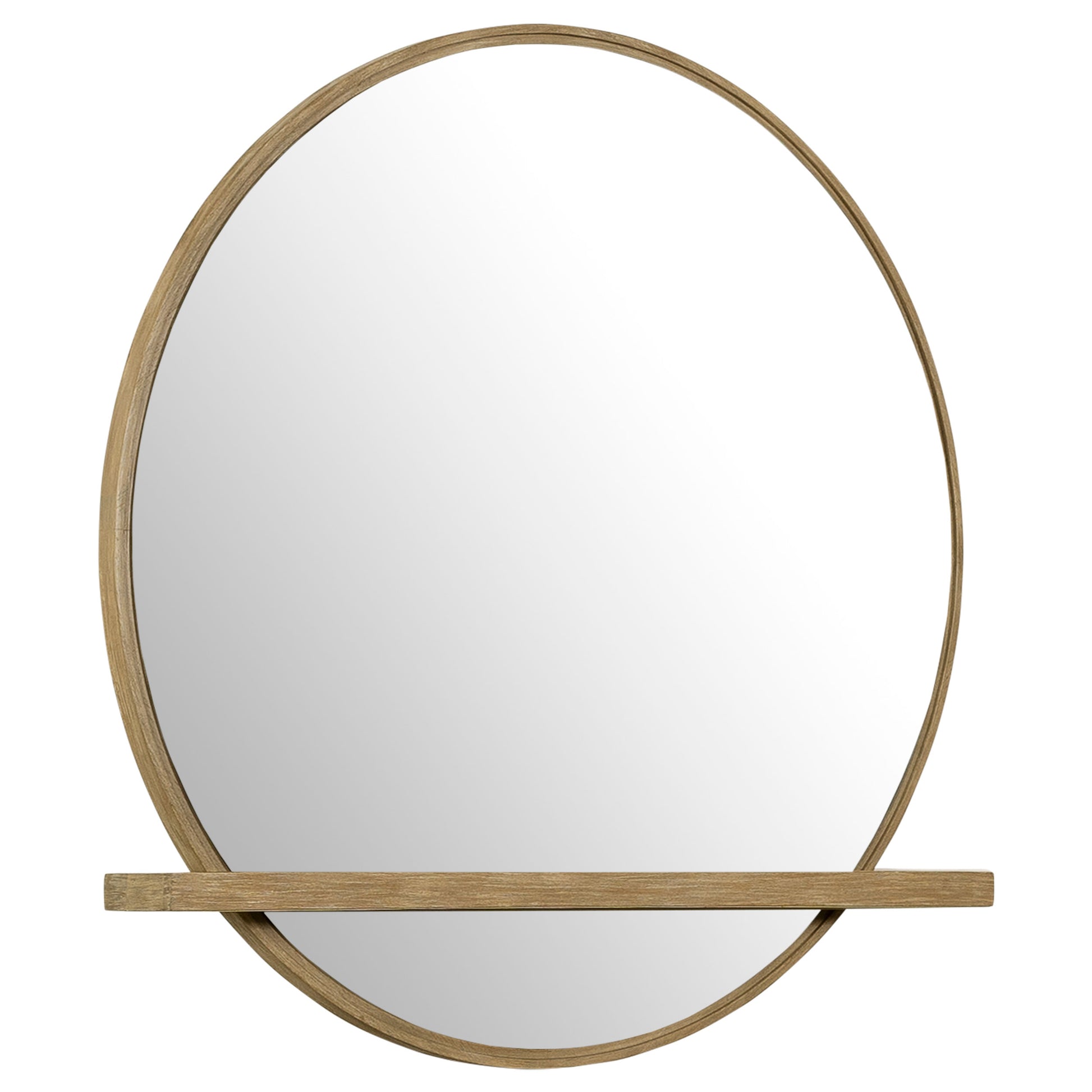 • Round mirror framed in sand wash wire-brushed wood for organic warmth