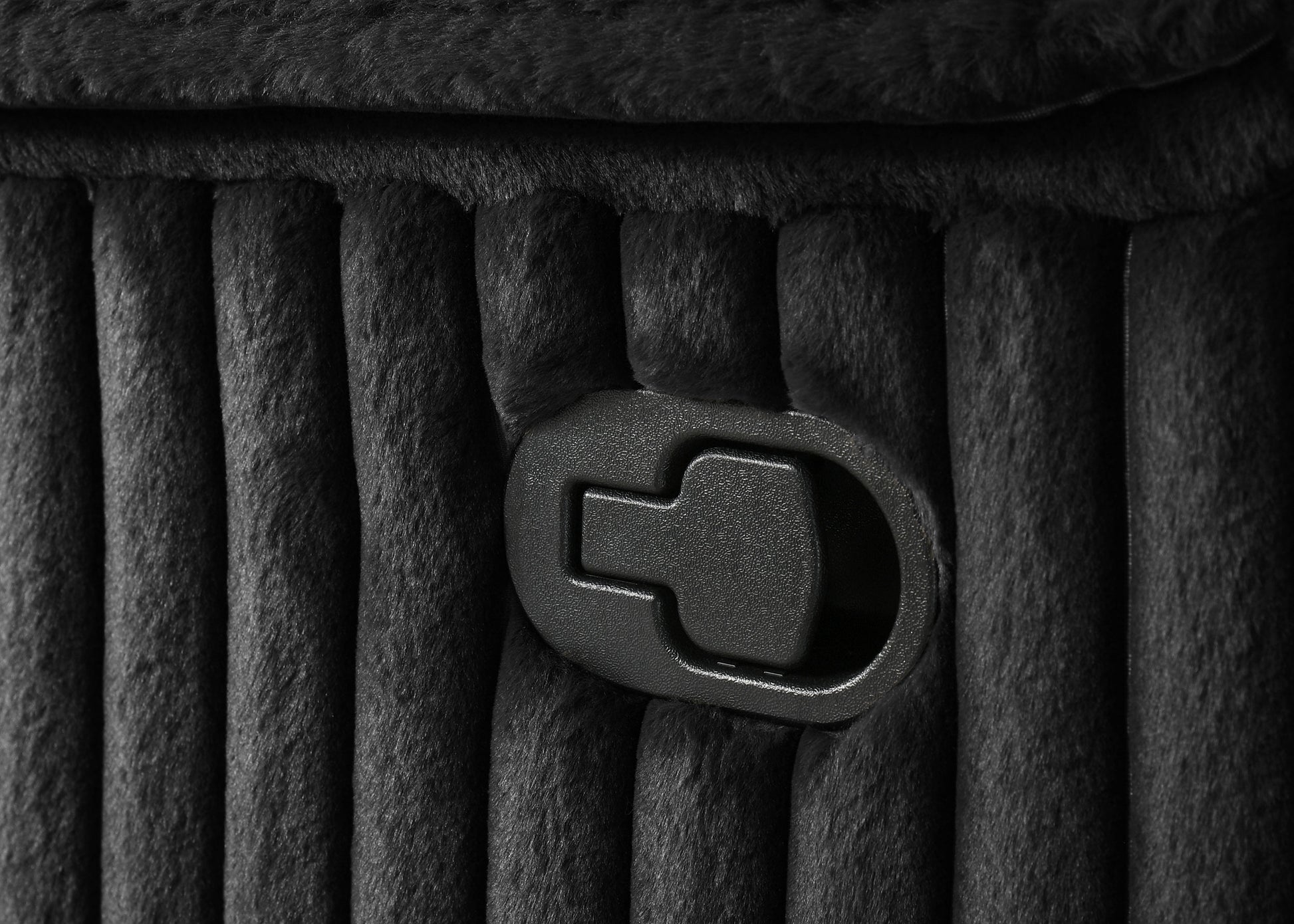 • Black wide-wale corduroy upholstery offers soft velvety texture and elevated visual interest
