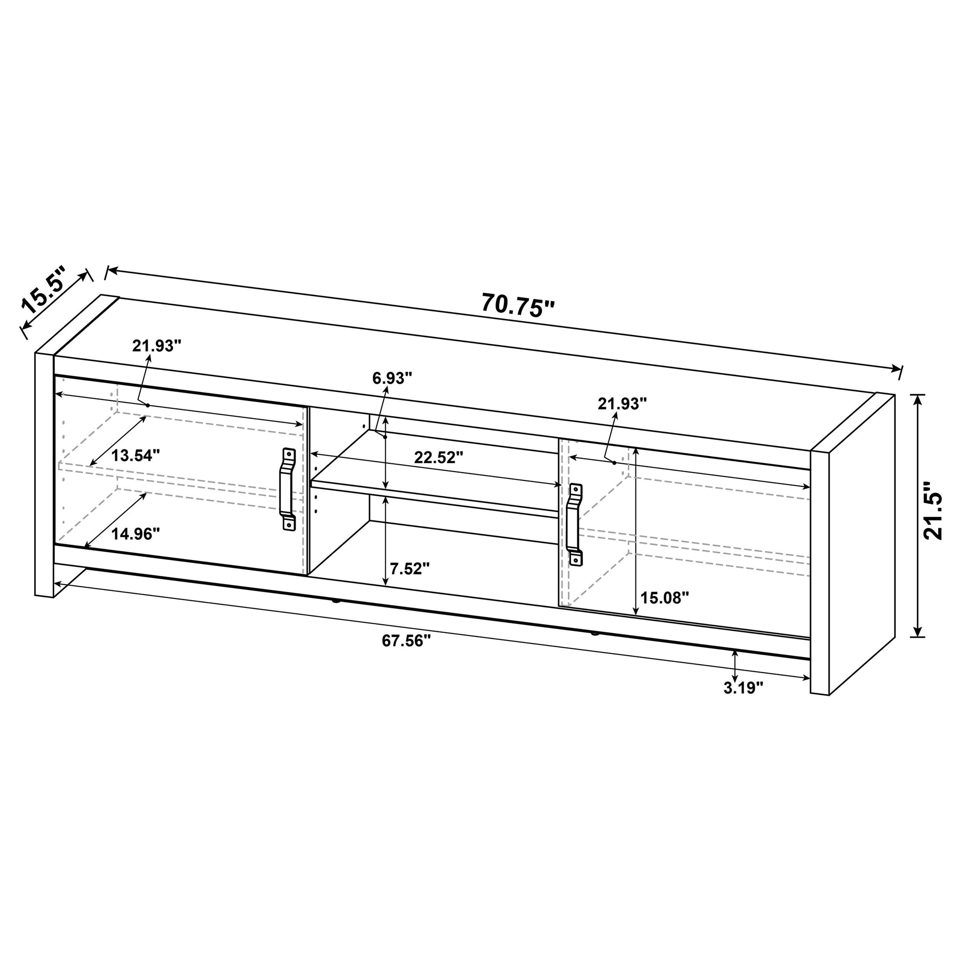 • 71-inch TV stand accommodates TVs up to 75 inches