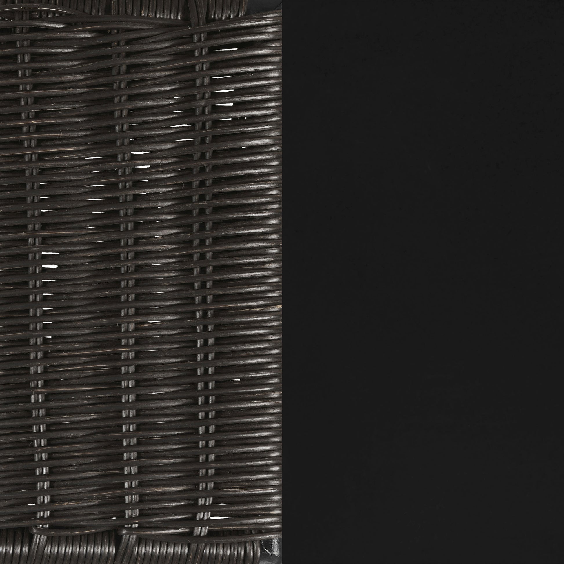 Place this transitional dining chair in a space for a hint of texture. Designed with a brown handwoven faux rattan across the seat, this charming chair offers a natural, boho-inspired vibe. Mounted on a black metal frame that offers all the support one needs, this lovely dining chair also offers vintage vibes with a flared base that lends an open, airy look. The sandy black slim frame also creates bold lines. Place this rattan-wrapped dining chair at a mid-century style dining table or allow it to grace a home office for extra guest seating.