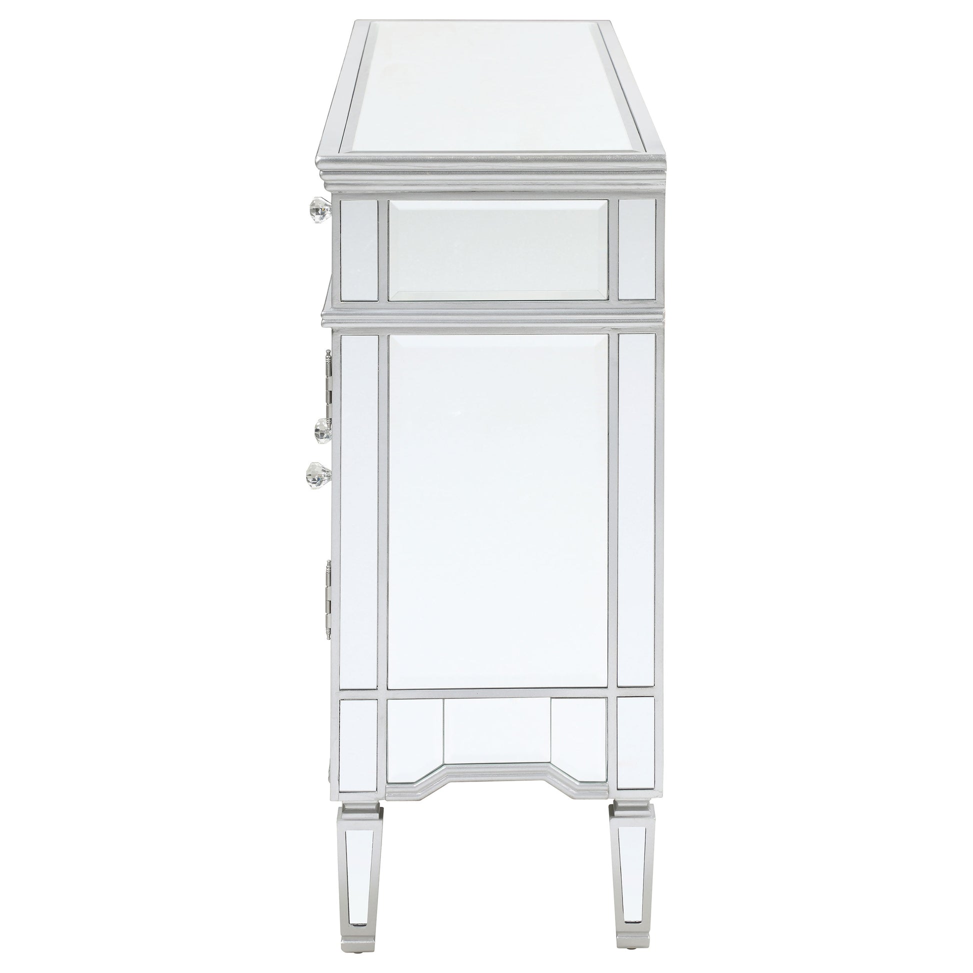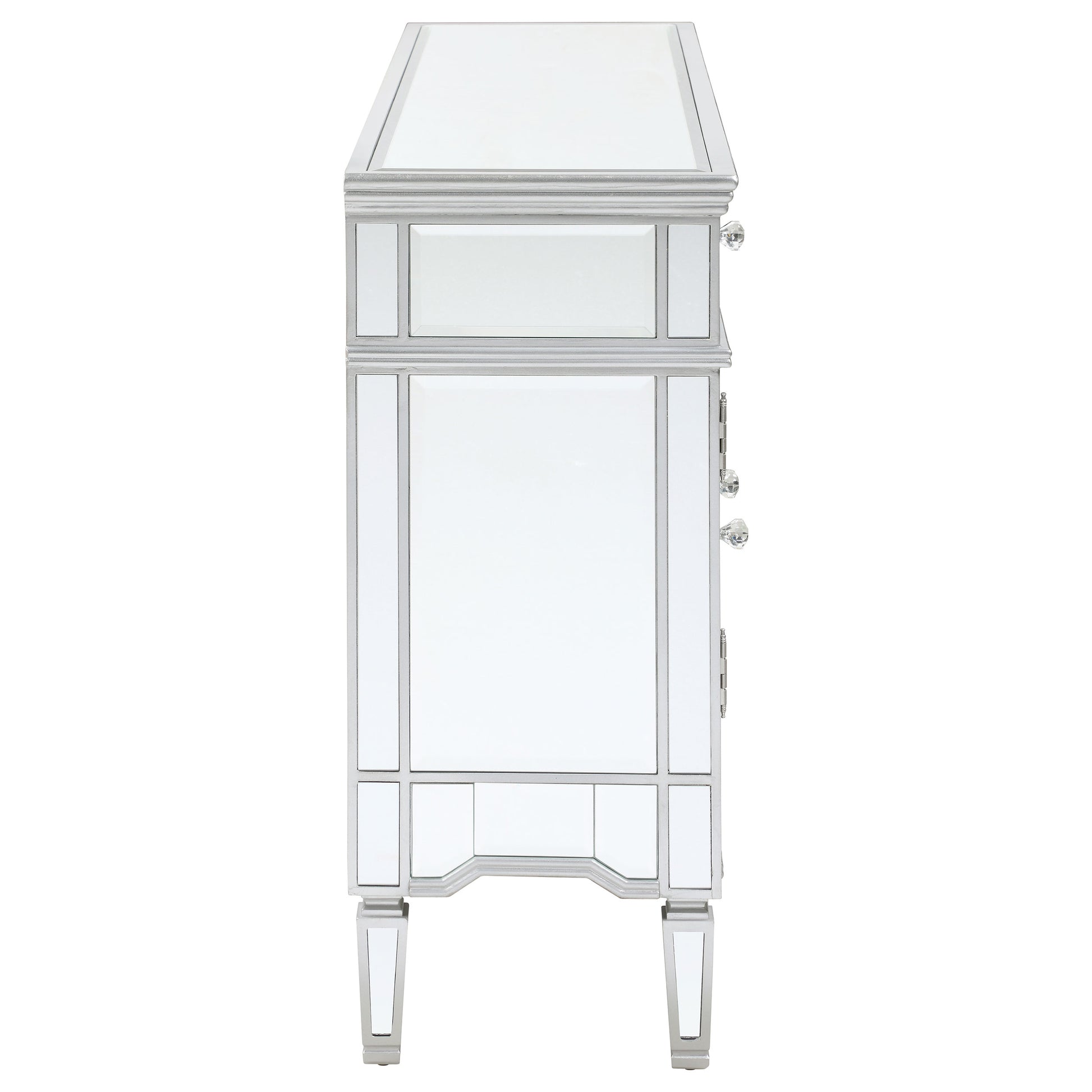 • Mirrored accent cabinet with silver framing and beveled glass panels