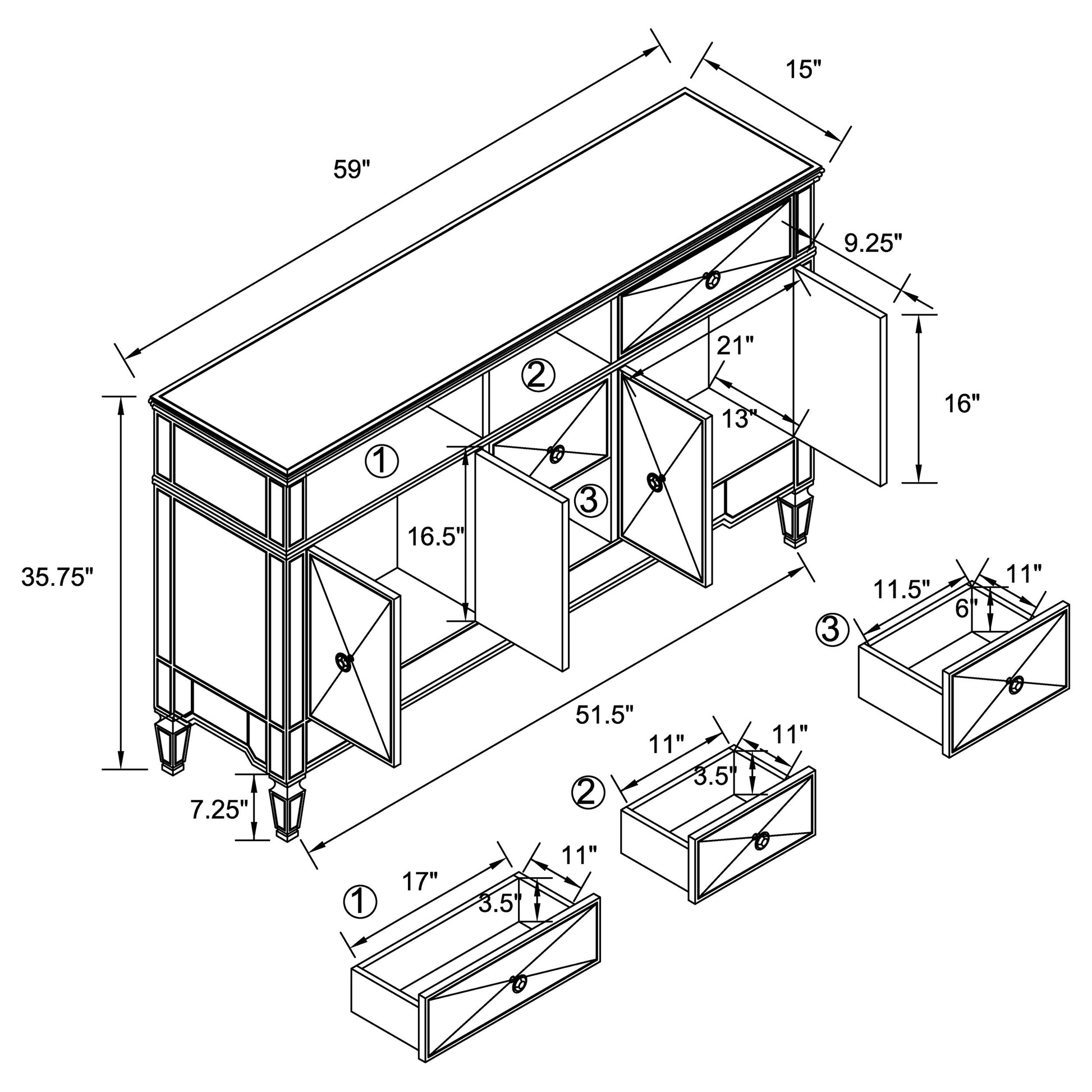 • Crystal hardware and reflective panels offer a glamorous finish