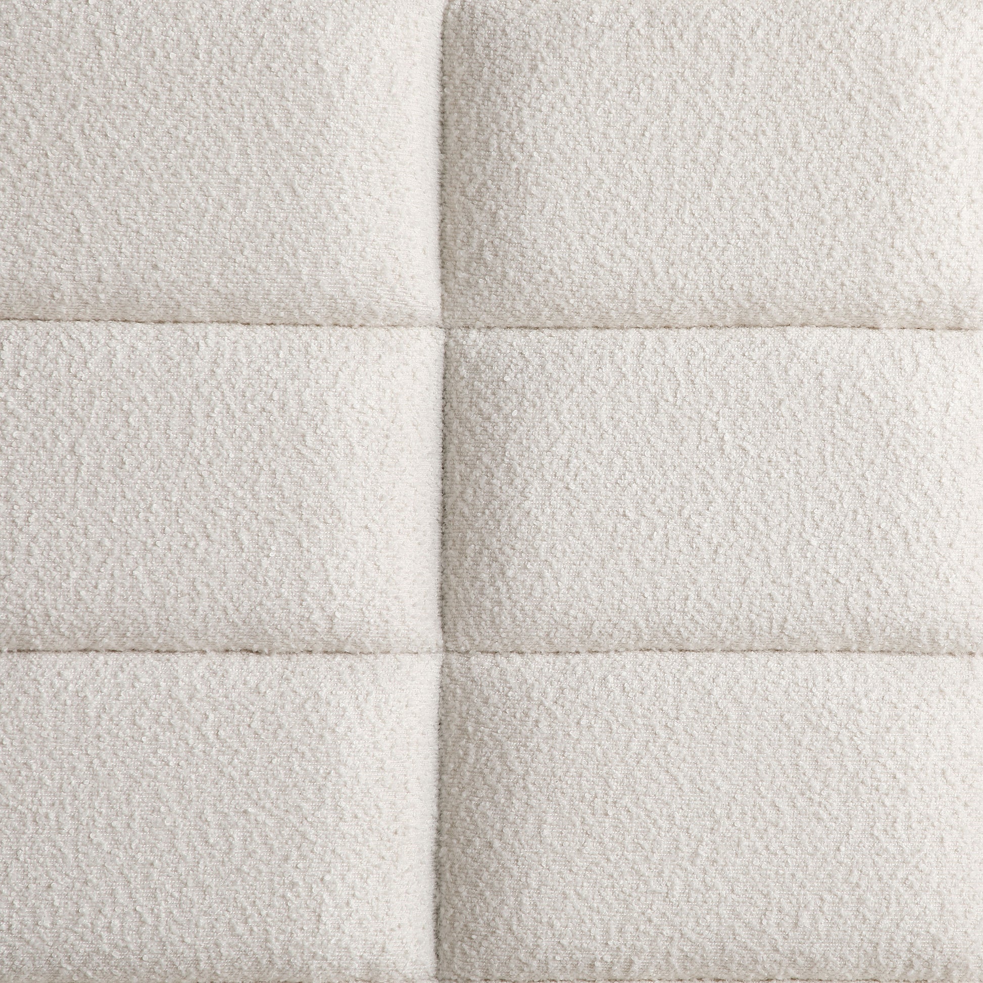 • Low profile footboard with matching grid tufting adds structure with an airy presentation