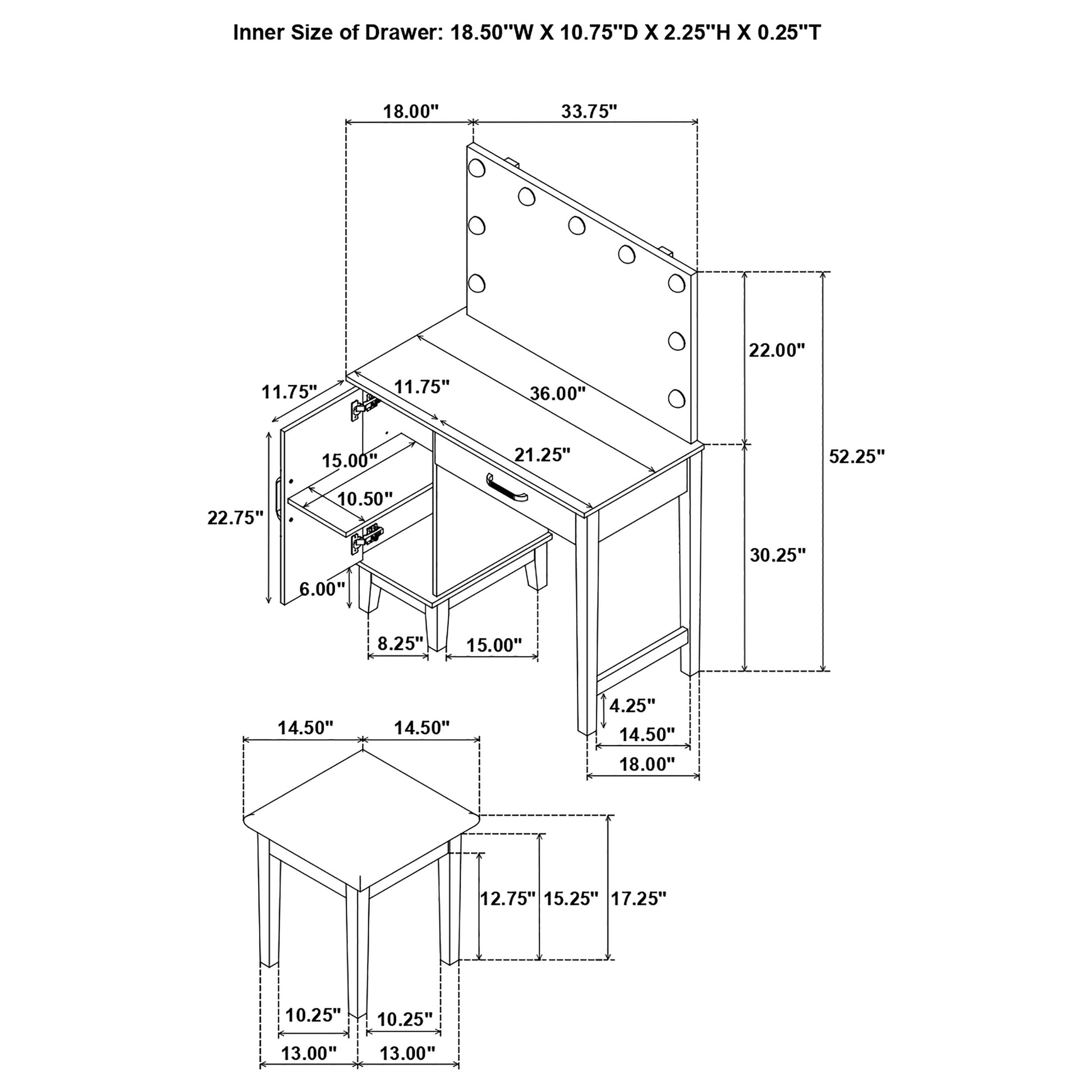 Elijah Vanity Set with Lighting & Stool White and Dark Grey