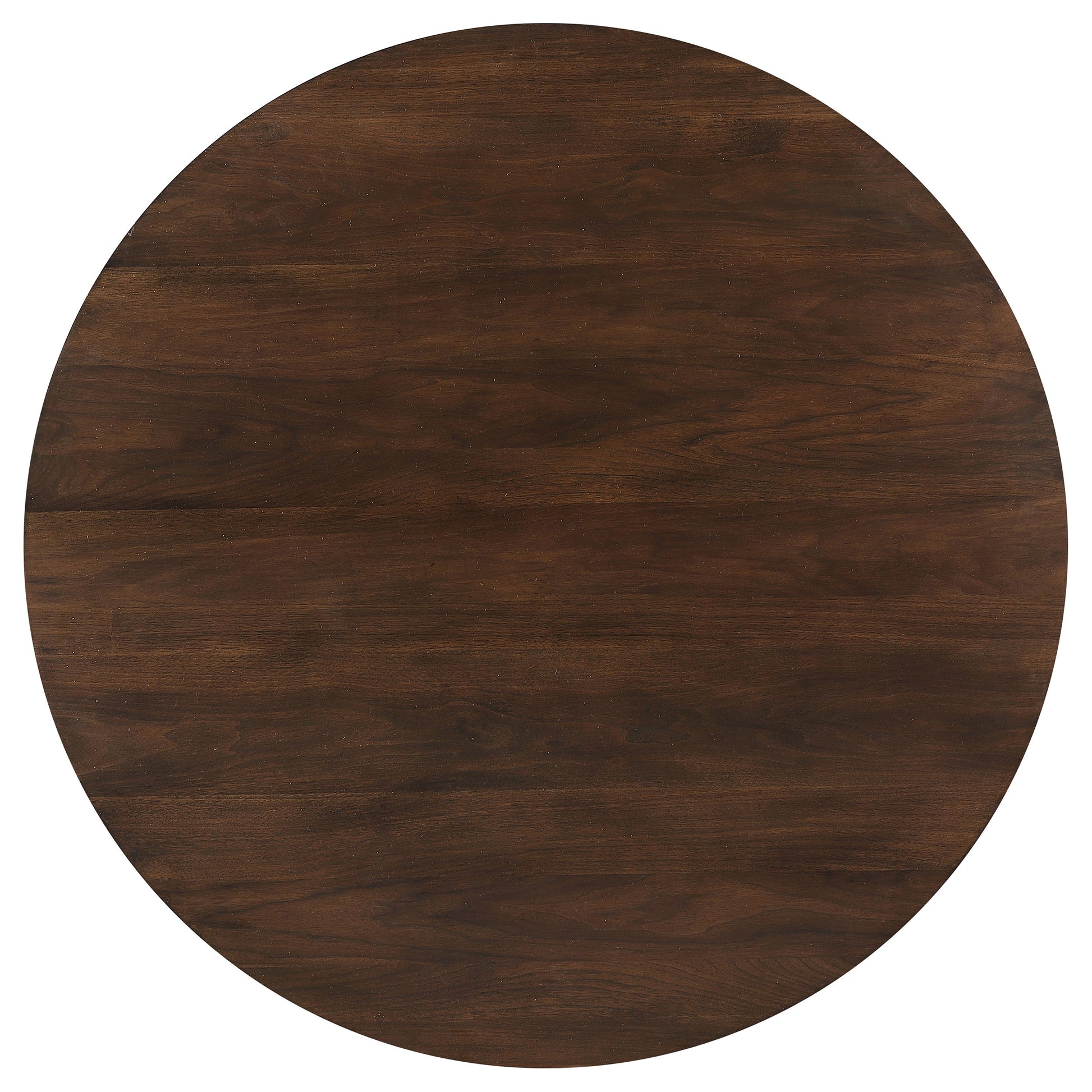 • Round dining table features a dark walnut wood finish that's deep and rich