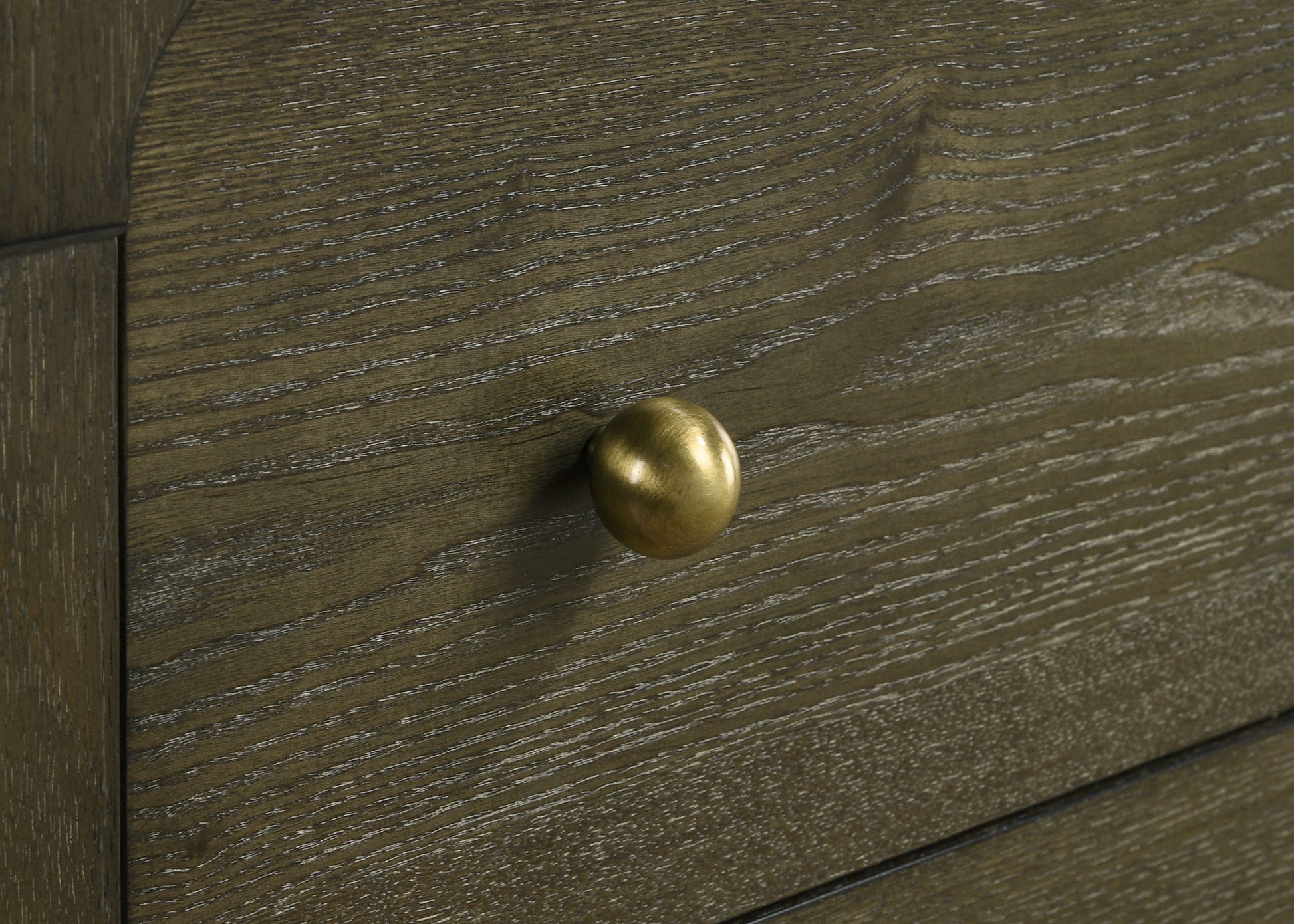 Elevate your bedside with this stylish nightstand, combining transitional design with practical functionality. Finished in dark cocoa with brass knobs, this nightstand features a solid wood drawer box with English dovetail joinery and 45mm metal ball-bearing glides for smooth operation. The top drawer is felt-lined and includes cord management access for your rechargeables. Crafted from solid hardwood, ash veneer, and MDF, this nightstand offers both elegance and durability.