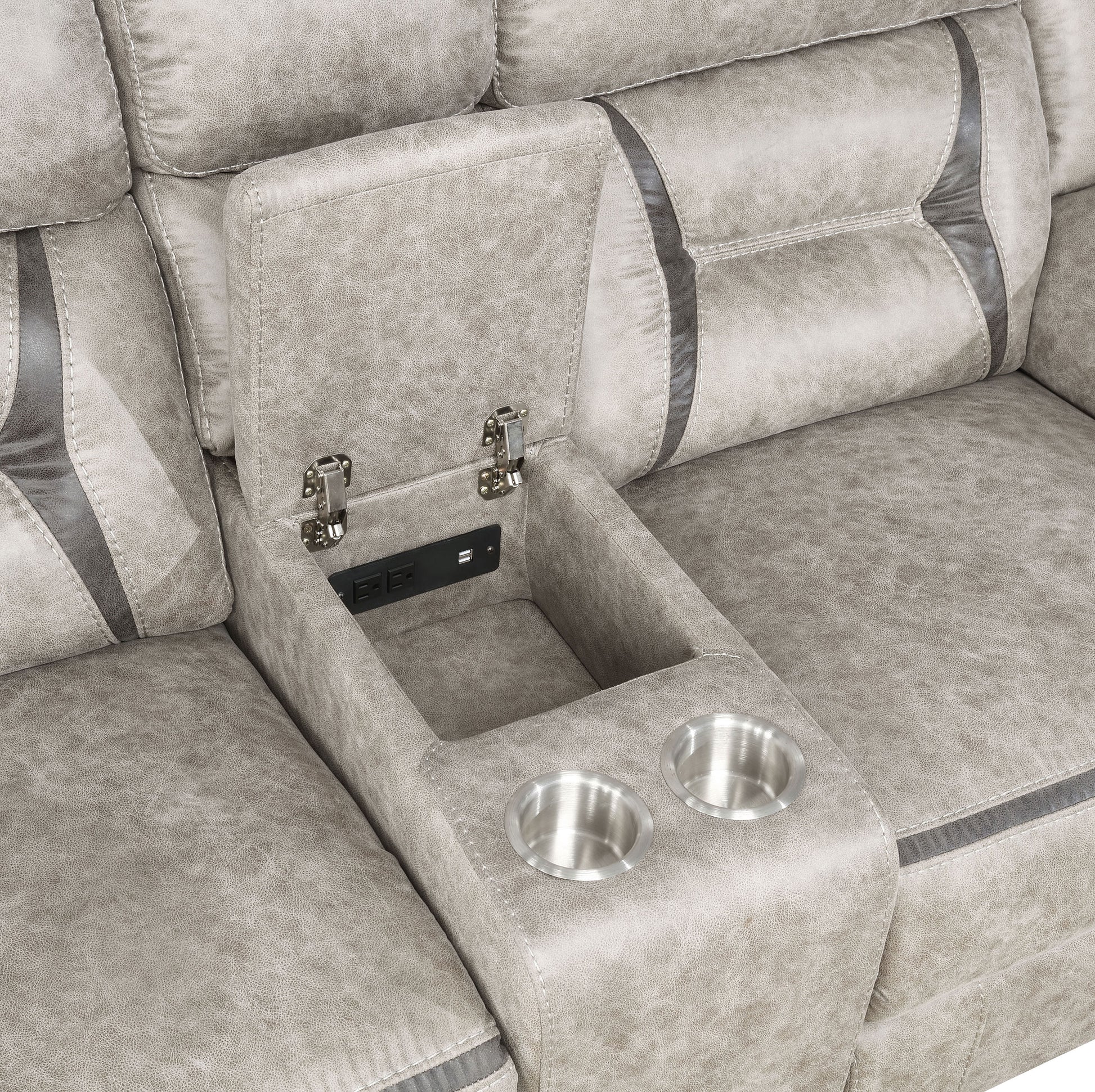 • Loveseat console includes lift-top storage and stainless steel cup holders