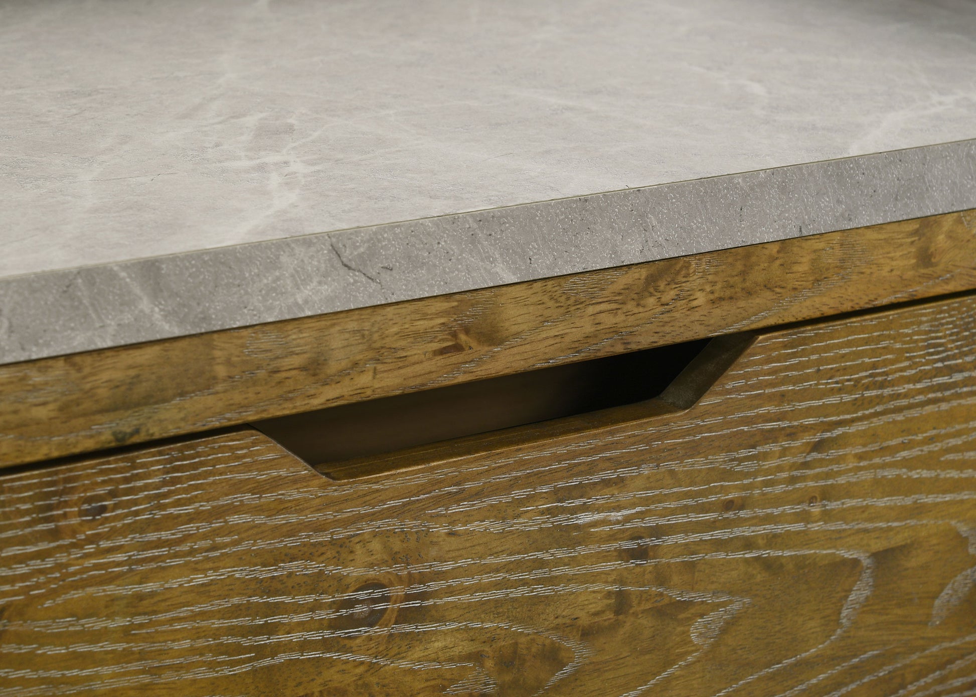 Elevated by its balance of texture and tone, this six-drawer dresser with mirror brings rustic charm into refined focus. Crafted from solid rubberwood and finished in a warm medium oak, the embossed wood grain adds depth and dimension. A faux marble melamine top lends a soft, contemporary contrast, while the framed mirror enhances brightness and symmetry. Smooth drawer function and minimalist finger pulls complete this harmonious blend of beauty and utility.