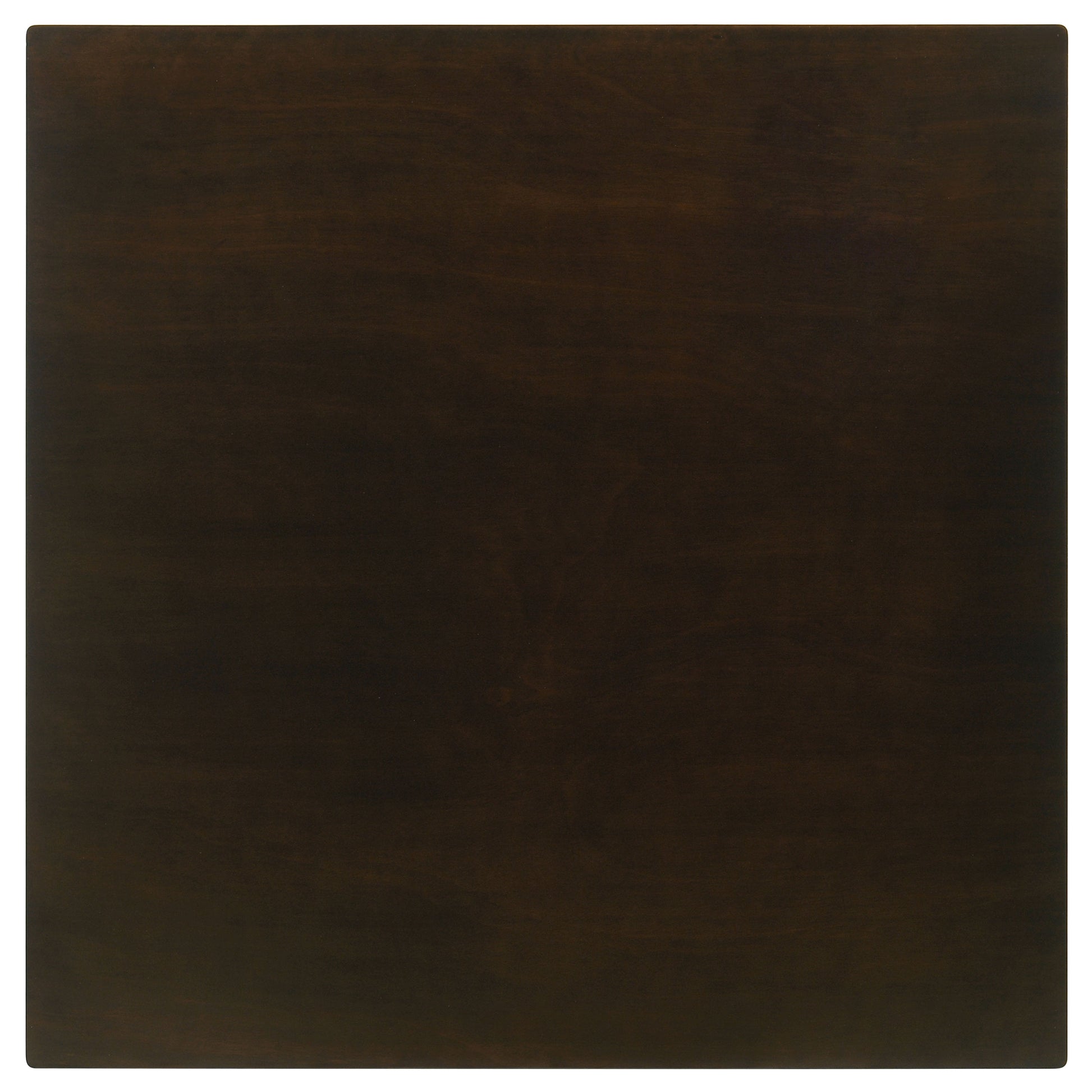 • Square table in espresso finish features pedestal base with built-in wine storage