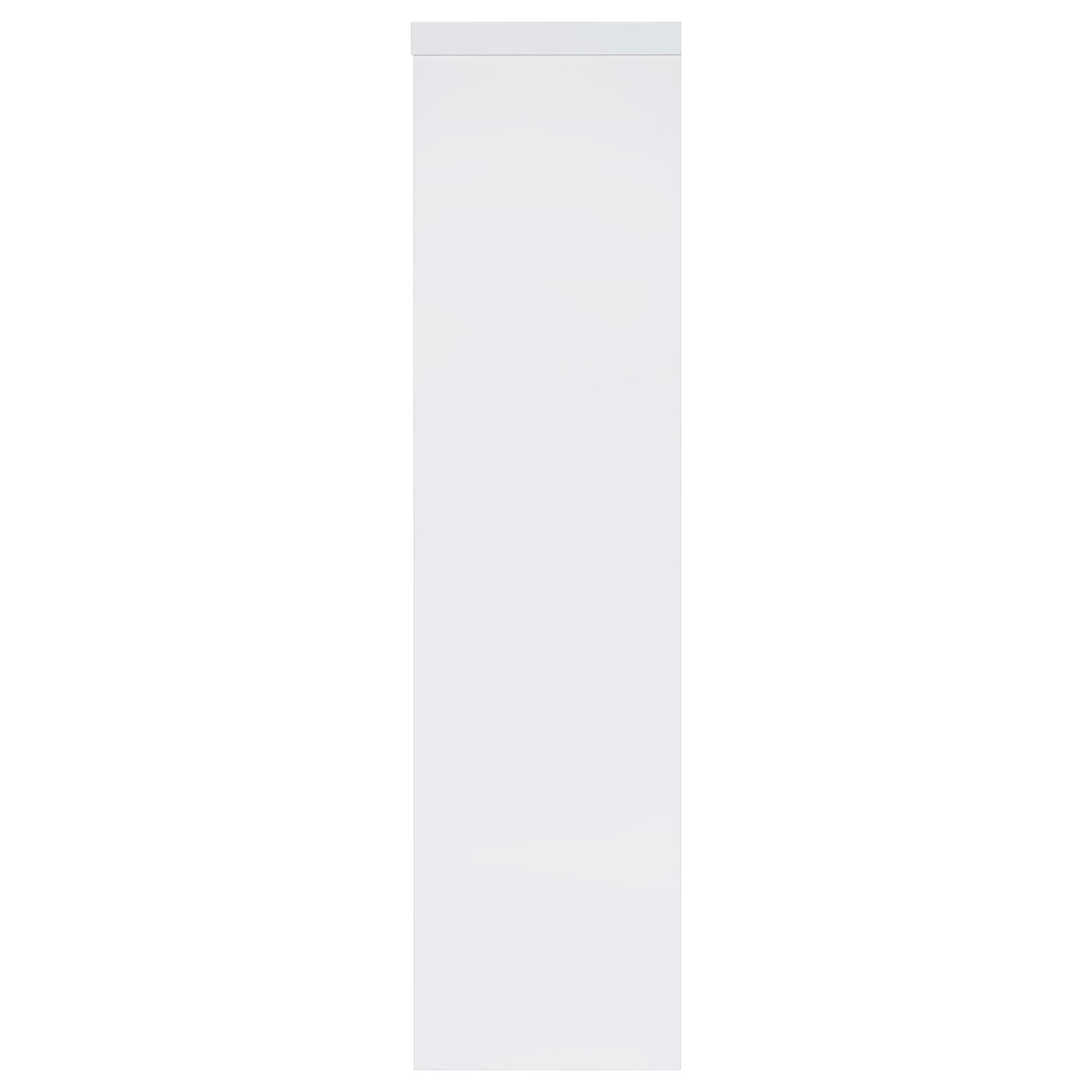 Extend a media console or add easy display space in a den or bedroom with this contemporary tower. Designed to accompany the matching media console, the tower adds a lower cabinet with shelving inside, and a pair of glass display shelves. It’s the perfect solution when both hidden and accessible storage are desired. A crisp white finish adds to the modern look and complements virtually any space. Melamine paper surfaces are designed for durability, perfect for everything from games and media to charming decor.