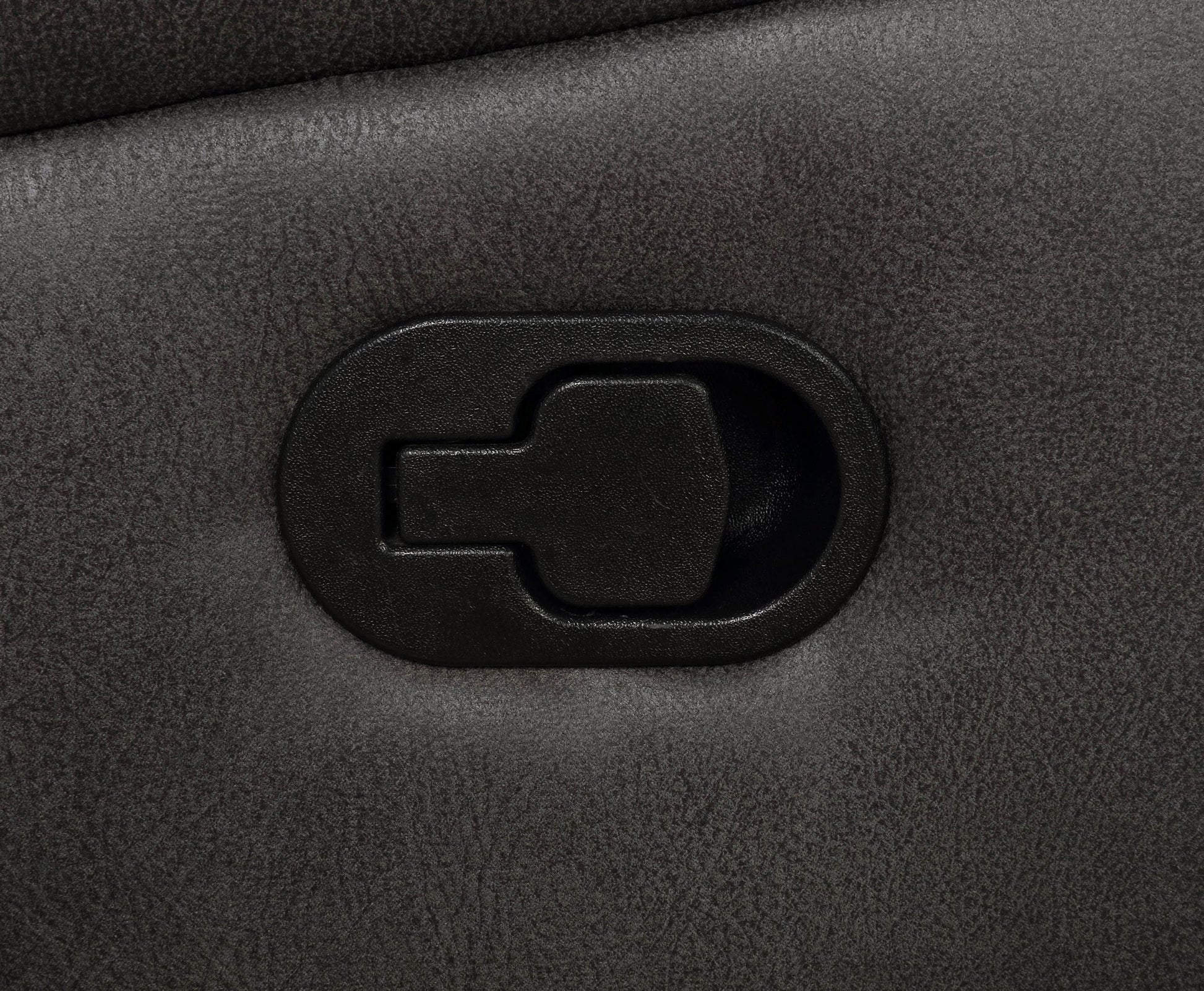 • Glider recliner in charcoal microfiber with padded arms and supportive tufted back