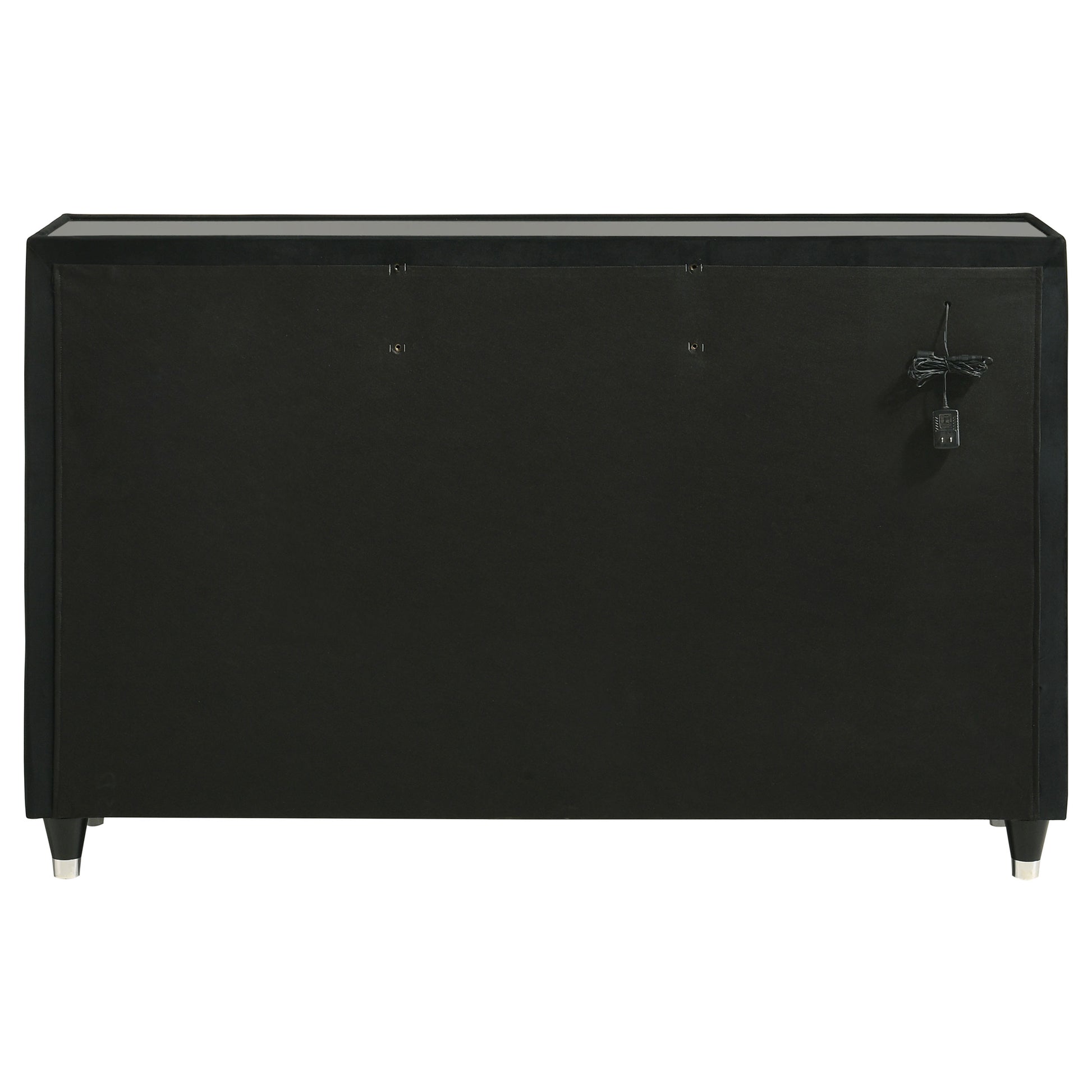 • Eight-drawer dresser fully upholstered in a black velvet for layered softness