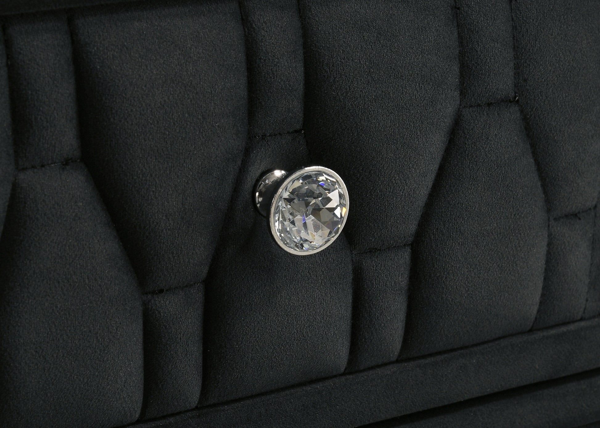 • Eight drawers with quilted fronts, crystal knobs, and reflective acrylic detail