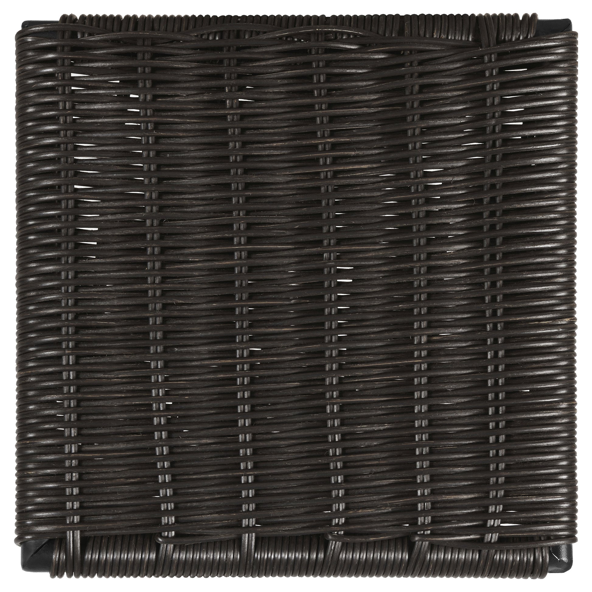 • Contemporary stool with mid-century-inspired aesthetic featuring brown faux rattan seat and open, airy frame