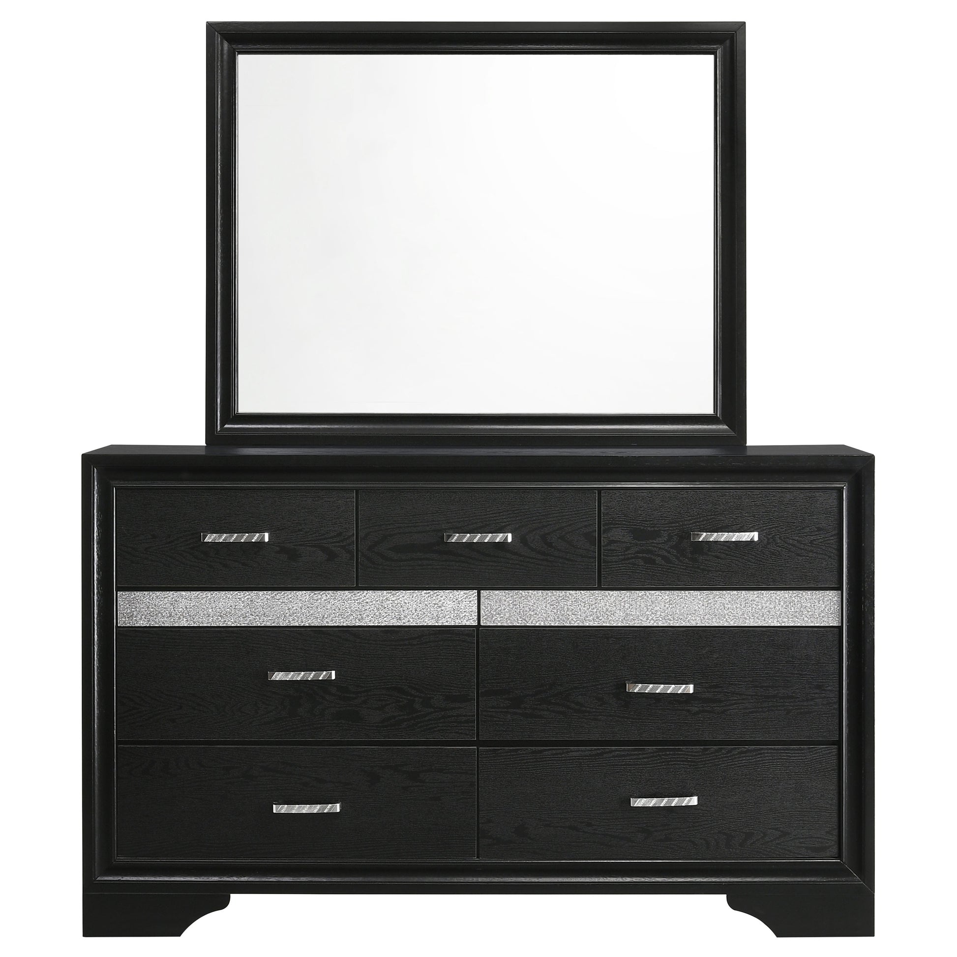Elevate your bedroom with the chic and sophisticated grace of this dresser, featuring felt-lined drawers to keep your delicate belongings safe. The hidden jewelry drawer provides discreet storage for valuables, while the glittery front panel adds a touch of sparkling opulence. This beautiful dresser lends elegance to any space, complemented by the cheerful mirror with its linear, dimensional design. The framed construction of the mirror offers a stylish ambiance, and the choice of finishes allows you to tailor the look to your design scheme.