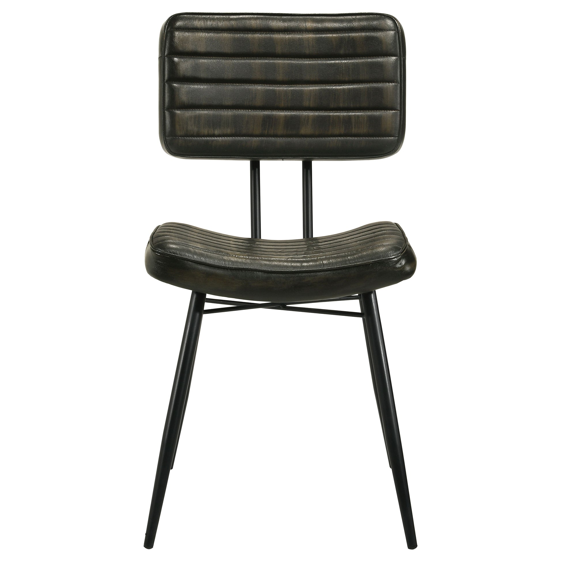 • Mid-Century Modern influence styles easy side chairs with scoop seats and thick back, both with channeling plus metal framing featuring iconic retro slender rounded, splayed legs