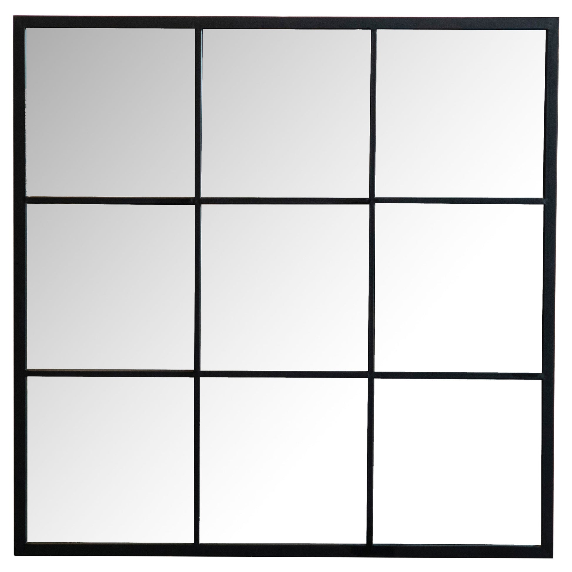 • Square wall mirror styled with a classic nine-panel windowpane layout