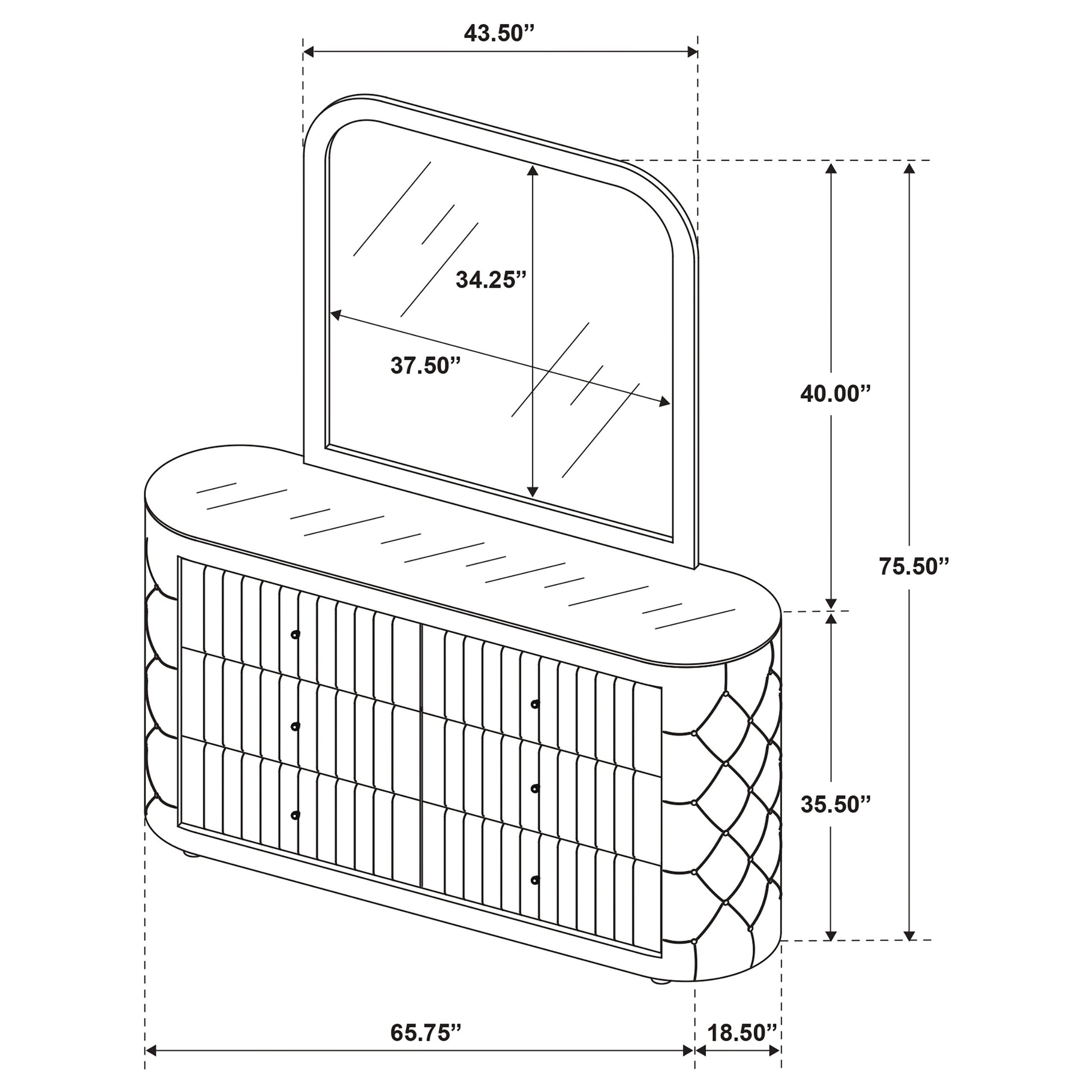 • Dresser and mirror set features plush boucle upholstery in a soft ivory tone throughout