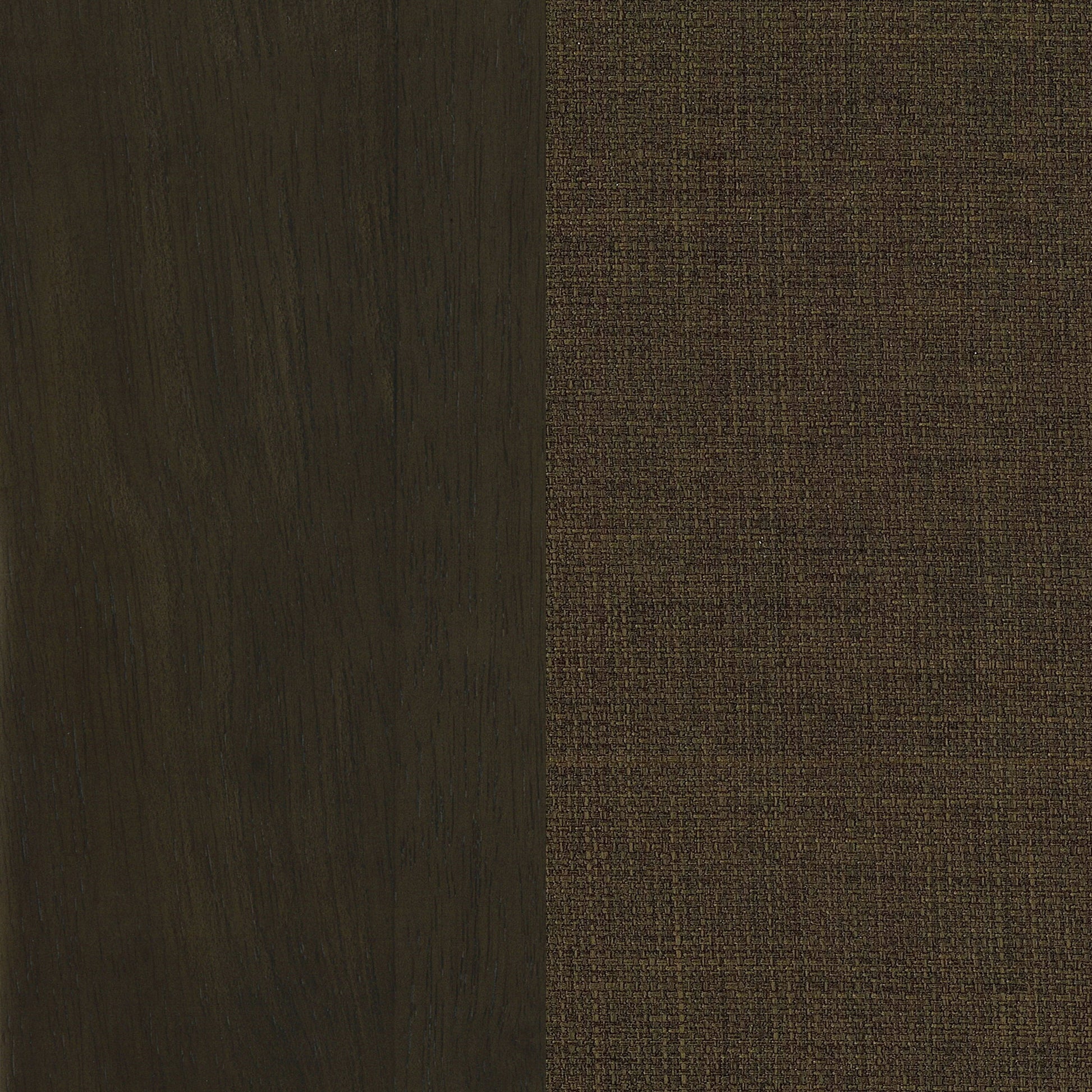 • Chocolate brown fabric upholstery adds inviting warmth and depth