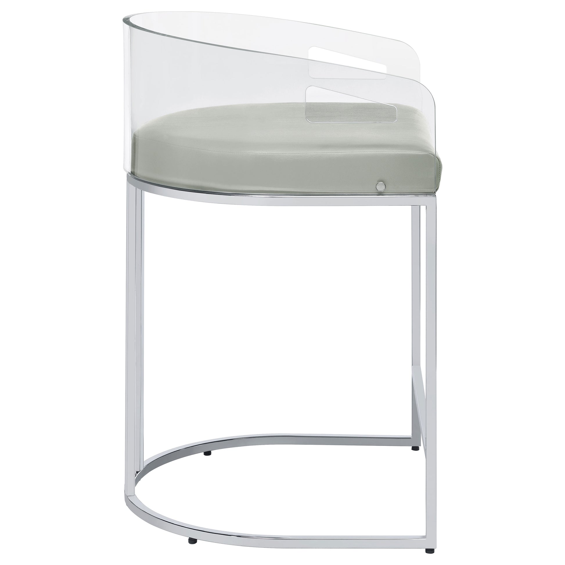 • Ultra-modern with a retro-inspired vibe, these stools feature a curved backrest in a clear acrylic material, leatherette cushion, and slim metal legs in a lustrous chrome finish