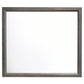 Modern design meets weathered appeal in this four-piece bedroom collection for a master or second bedroom. Each piece of the set has a gray oak finish with contrasting black accents and frames for a look that's understated yet bold. The queen bed has an impressive headboard and low footboard with black rectangular paneled accents. The elegant nightstand and dresser have deep drawers with lustrous silvery accented handles. The matching mirror has straight lines and is a perfect fit for the gorgeous dresser.
